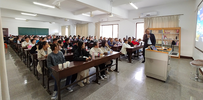 讲座中,郭健彪教授旁征博引、热点信息信手拈来,语言通俗易懂、幽默诙谐,在两个多小时的时间里,让在场的师生对新时代中国发展大战略和面对的国际环境有了深刻的认识,让参加讲座的师生享受了一场酣畅淋漓的学术盛宴。 (文/图 马院)