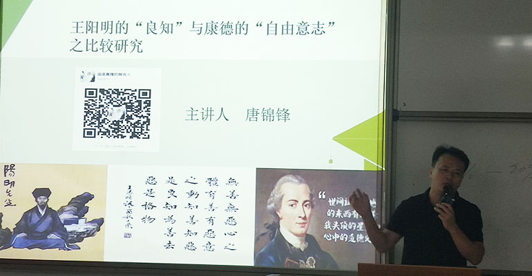此次面试包括应聘人员的个人介绍、学术汇报、未来学术研究方向等环节。唐锦峰博士首先从博士论文写作的时间跨度、写作中遇到的困难、博士论文写作中的感悟等经验的角度进行了分享。他表示,今后会继续进行科研,并希望在比较研究的基础上,利用自身优势,更进一步发展。他随后还对其博士论文《王阳明的“良知”与康德的“自由意志”之比较研究》进行了简要的介绍。