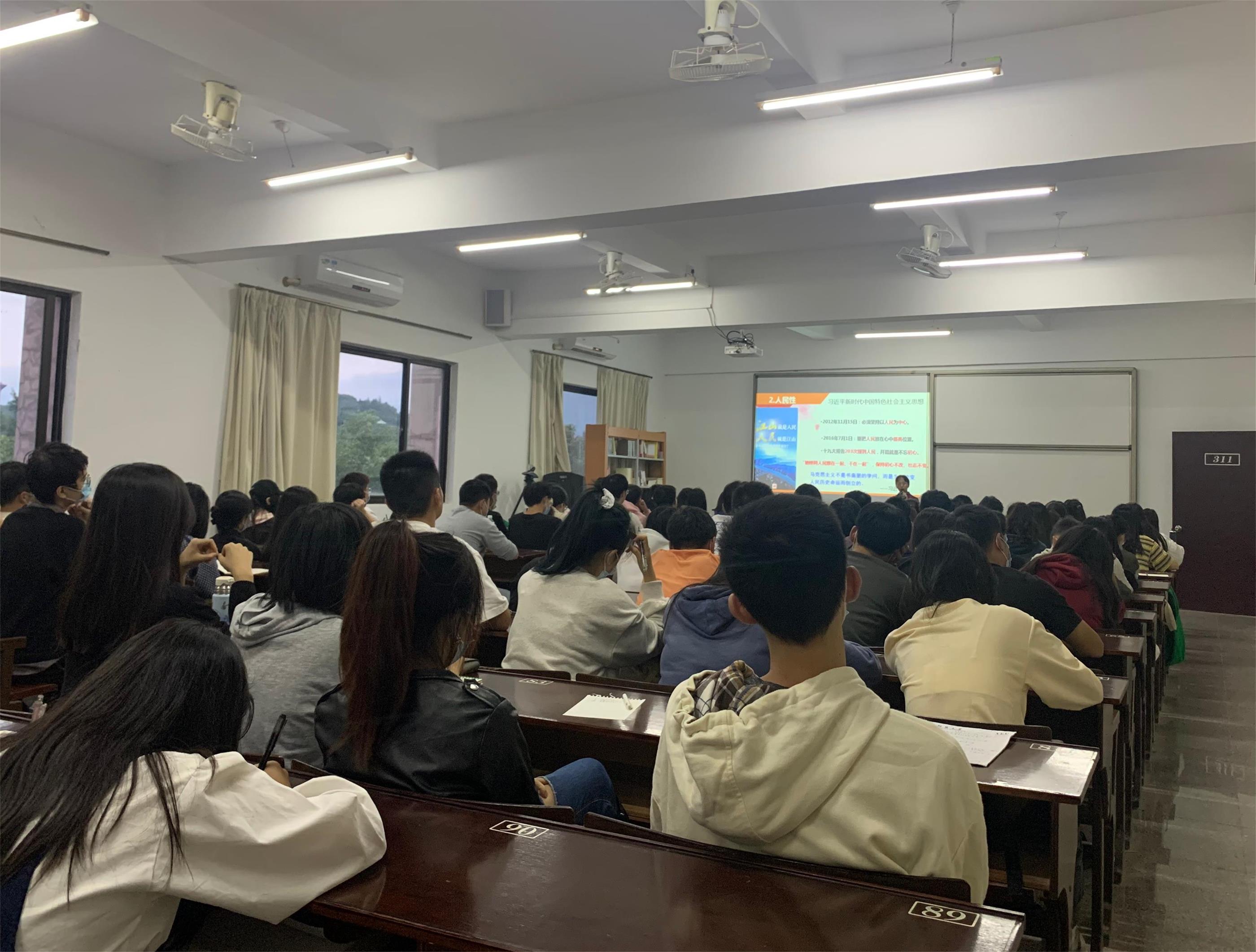 首先,杨老师以习近平总书记在庆祝中国共产党成立100周年大会上的讲话为引语,从两个要点讲述了“马克思主义为什么行”。一是理论的正确性,二是党的领导有力量,杨老师以生动的言语向同学们深入讲解了这一重要问题;紧接着强调了“坚持真理、坚守理想、践行初心、担当使命、不怕牺牲、英勇斗争、对党忠诚、不负人民”的伟大建党精神;最后,以建国72年来交通工具的变化历史为例,讲述了马克思主义指导中国人民从站起来、富起来到强起来的发展之路,深刻刨析“马克思主义行在哪”,只有马克思主义、只有当代中国马克思主义,才能指导我们实现中华民族伟大复兴的宏伟目标。