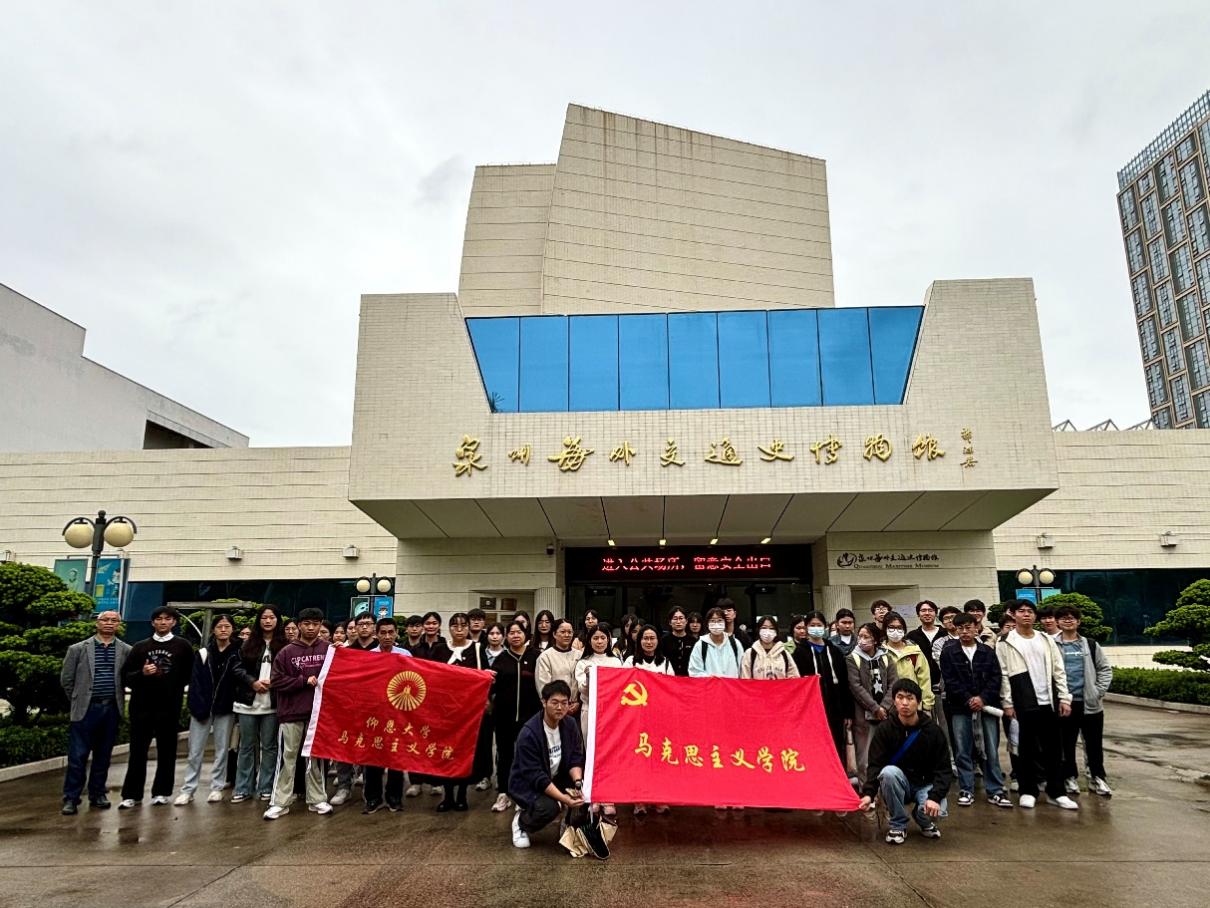 在胡友仁、蔡惠丽、宋家本等教师的带领下,师生们共同参观了泉州海外交通史博物馆。泉州作为宋元中国的世界海洋商贸中心,以风樯鳞集的国际性港埠托举起海洋商贸的奇迹,也以多元共生的文化景观创造了不同文明交流互鉴的典范。“泉州:宋元中国的世界海洋商贸中心”展馆展现出了历史上不同海域、不同国度、不同宗教、不同族群穿越时空阻隔和谐共存一城的物质和精神遗产,书写了古代中国与世界交互影响的历史记忆,也为践行人类命运共同体理念提供了历史的借鉴与启示。开放包容的“海丝精神”不仅在文化传承中发挥着重要作用,而且在现代社会中展现出强大的生命力。